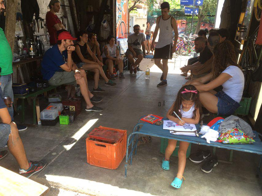 siempre esta abierto para compartir y conocer el espacio, si querés sumarte al espacio también es una opción, además de arreglar bicis, buscamos explorar la capacidad que esta nos brinda de transfomarnos desde otra forma de percibir la realidad y como expresarlo.