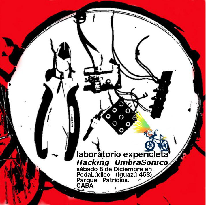 -->Taller umbrasónico de 17:30 a 20:30.. en el que nos proponemos dar reuso a tecnologías que tenemos a disposición y proyectar alternativas expresivas al hecho de andar en bicicleta.