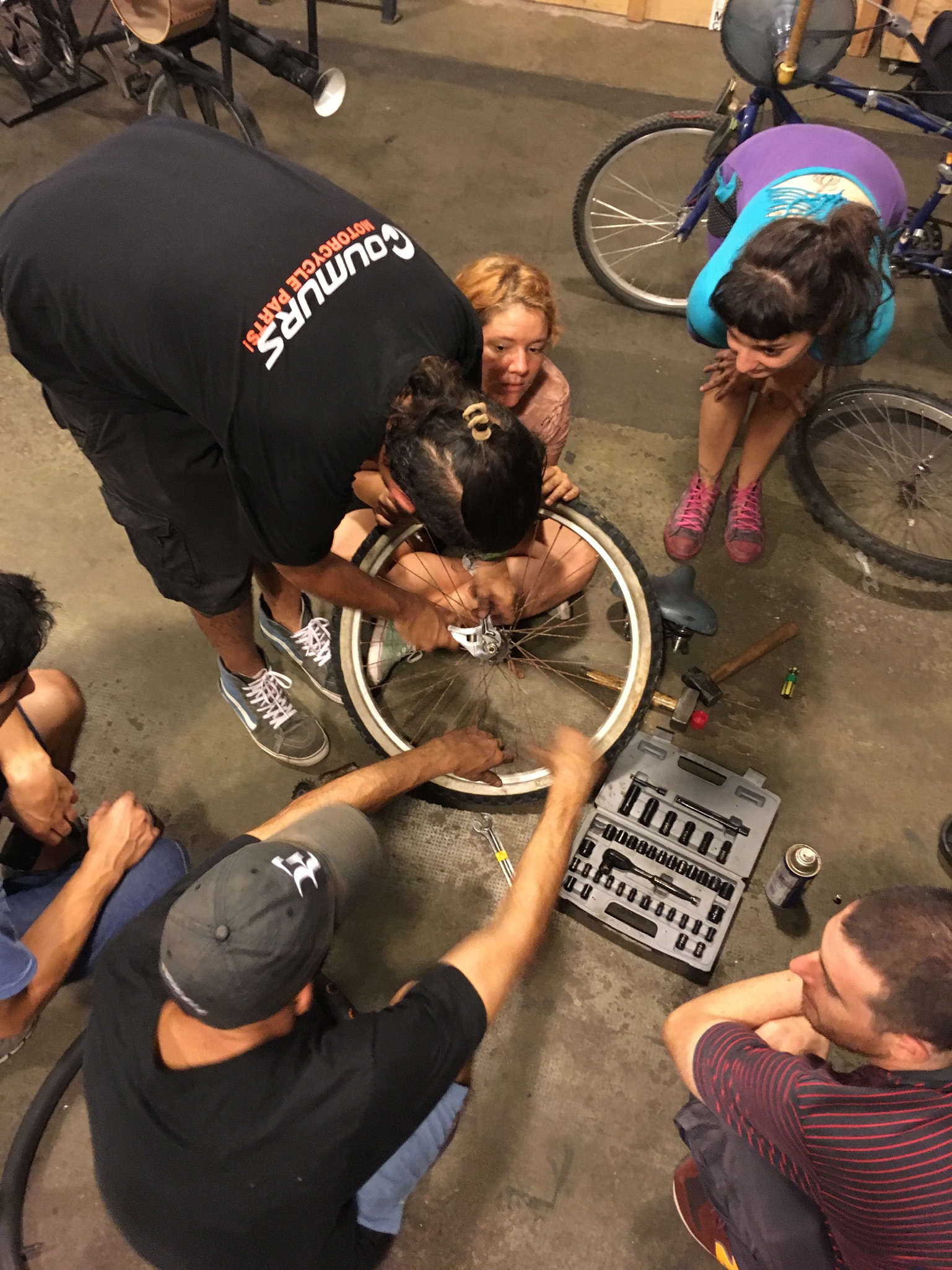 La dinámica es compartir el conocimiento de quienes tienen más experiencia y de quienes tienen curiosidad en aprender y ser autónomos en el mantenimiento y arreglos básicos de la bici.