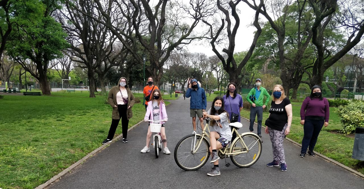 Este domingo 15 de Noviembre hicimos la 4ta biciescuela post pandemia. Fer llevaba una pequeña bici en el cuello y Juan P y yo (Gracia) pedaleabamos con bicis para prestar. Salimos de Chela a Parque Ameghino. Modificamos el lugar de encuentro para aprovechar las pequeñas inclinaciones y los bancos a la sombra de los árboles característicos de este parque sin rejas al sur de nuestra ciudad. La constancia semanal de estos encuentros comenzó a marcar un camino muy especial y gratificante. Hoy para escribir esto lo recorrí con la memoria. La primera fue el día de la madre, empujadxs por el deseo pero sabiendo que afectaría la convocatoria la hicimos igual. Un poco para no perder inercia, y otro poco para arrancar chiquito y poder llevarnos alguna tarea que mejorar. No solo fueron mujeres y niñas, además todas siguen hoy acompañándonos. Ese día me fui preocupada, ninguna de las concurrentes había logrado independencia con la bici. Se lo atribuimos al corte antes de tiempo o a la ansiedad festiva (debían correr a atender comensales en sus casas).